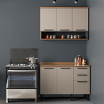 Seu design moderno combina os tons Mel e Fumê, criando um contraste sofisticado que valoriza o ambiente. As portas com puxadores metálicos e o acabamento de alta qualidade garantem durabilidade e um visual contemporâneo. Além disso, os módulos amplos e bem divididos permitem armazenar utensílios, mantimentos e eletrodomésticos de forma prática e acessível.