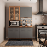 Seu design moderno combina o tom elegante de Cinza com o aconchego da madeira Freijó, criando um ambiente sofisticado e acolhedor. Produzido em MDP de alta resistência, o conjunto garante durabilidade e praticidade no dia a dia, além de contar com puxadores metálicos e bom aproveitamento vertical, ideal para cozinhas de diversos tamanhos.