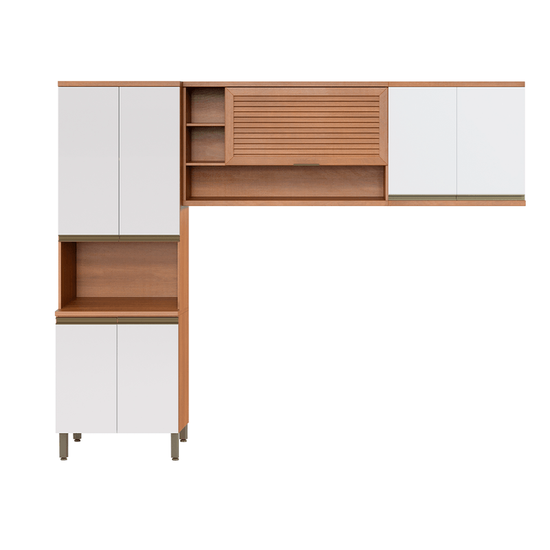 Desenvolvido para otimizar o espaço, o conjunto oferece excelente distribuição interna, com portas e nichos que facilitam a organização de utensílios, louças e mantimentos do dia a dia. Sua estrutura é produzida com materiais de qualidade, garantindo resistência, durabilidade e praticidade no uso diário.