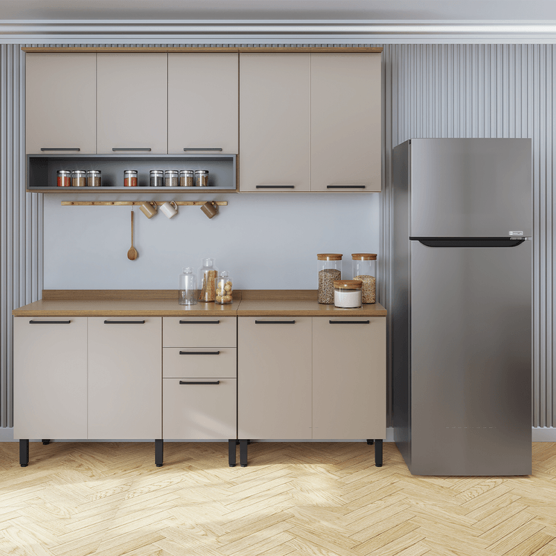 Produzido com materiais de alta qualidade, o modelo Caiena conta com amplo espaço interno, divisórias bem distribuídas e portas com puxadores elegantes, ideais para manter seus utensílios, mantimentos e louças sempre organizados. O acabamento resistente garante durabilidade e facilidade na limpeza, tornando o dia a dia muito mais prático.