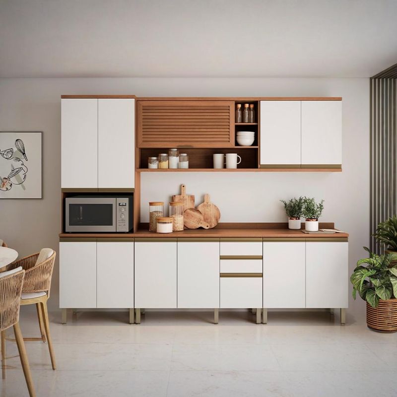 Deixe sua cozinha completa, moderna e organizada com o Armário de Cozinha Completo 5 Peças Telasul Macadâmia. Com um design sofisticado e acabamento na elegante combinação Freijó/Branco, este conjunto é ideal para quem busca praticidade e beleza em todos os detalhes.