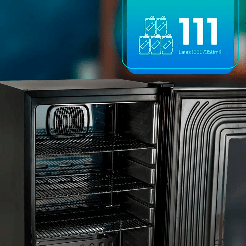 - Capacidade de Garrafas/Latas: Até 111 latas (330/350ml)