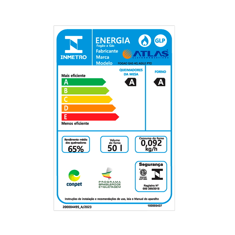 Potência dos Queimadores: 2Q Semirrápido de 1,67kW e 2Q Rápido de 2,0kW