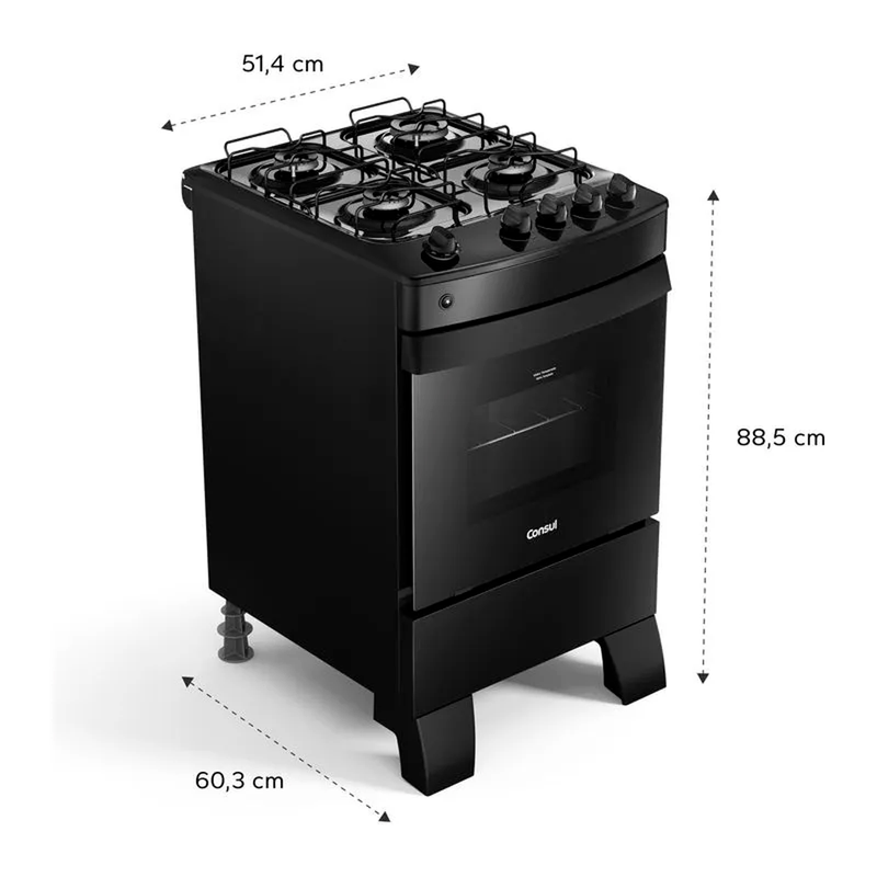 Seguro e de QualidadeCom quinas não cortantes e válvula contra vazamento de gás, você terá um fogão de uma marca que você pode confiar. A Consul é conhecida pela qualidade dos seus produtos e não te deixa na mão quando o assunto é segurança.