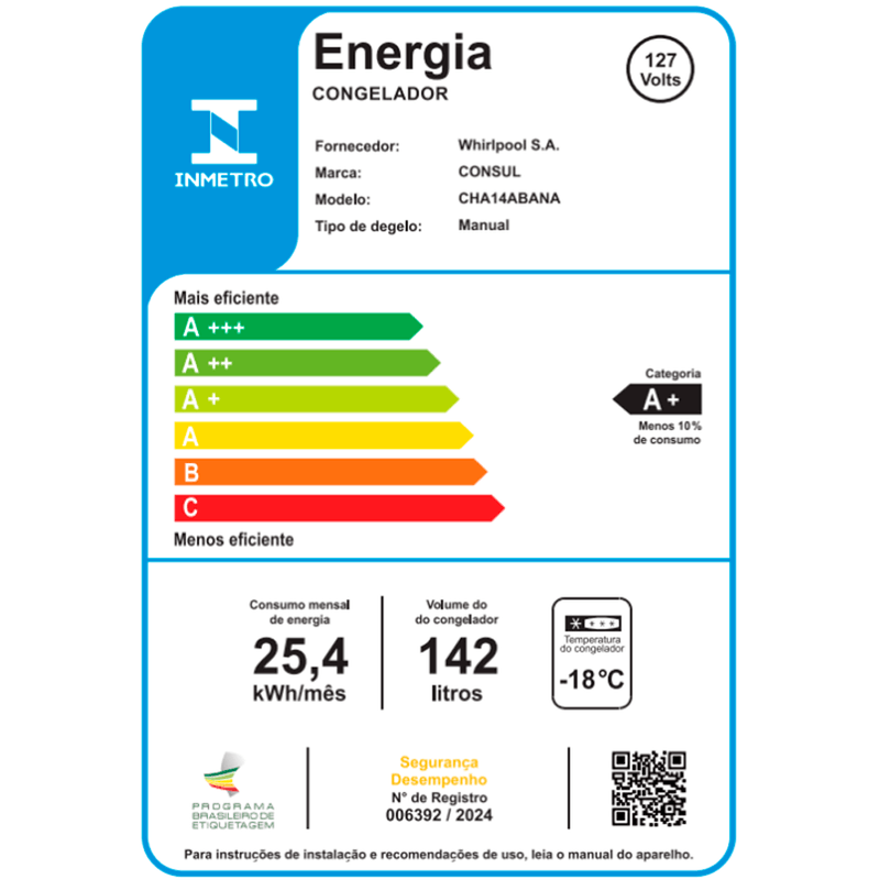 EconômicoSeu freezer com eficiência energética comprovada que economiza* energia e não pesa na sua conta de luz. *A classificação energética A+ economiza até 10% de energia em relação a classificação energética A do INMETRO.