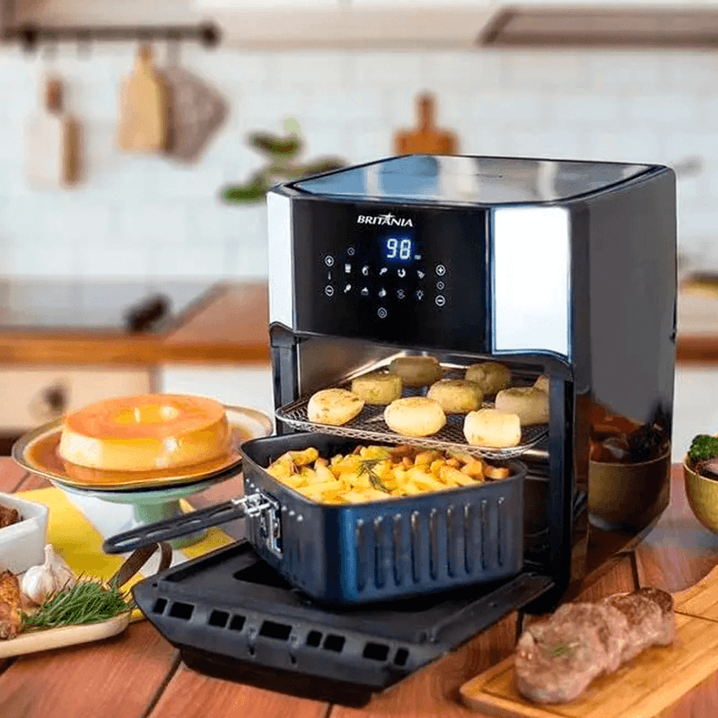 Com três prateleiras, ela faz tudo, ao mesmo tempo, por você. As três prateleiras dão a liberdade para preparar a refeição inteira de uma só vez. Esperar o hambúrguer ficar pronto, para depois fritar as batatinhas? Com a Air Fryer Oven da Britânia, não precisa escolher qual fazer primeiro: ela faz tudo, ao mesmo tempo, por você.