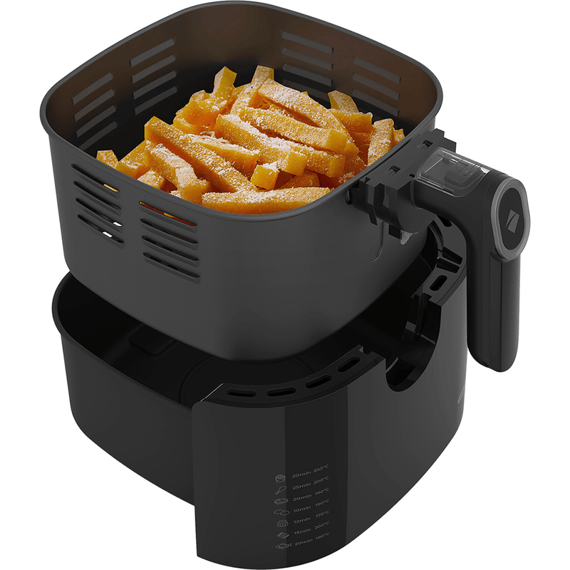Com seletor de temperatura de 80° a 200°C, ideal para carnes, empanados, minibolos, legumes e mais.