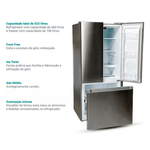 - Divisão Refrigerador: 2 gavetas individuais, 6 prateleiras nas portas, 3 prateleiras de vidro