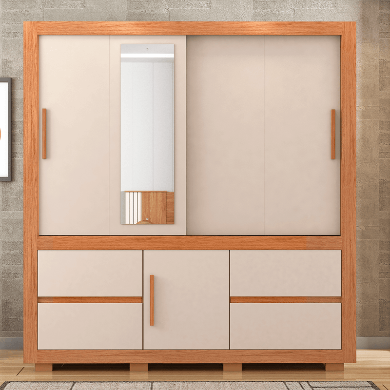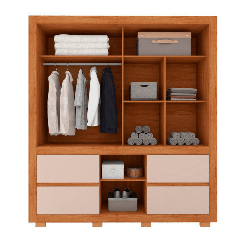 Suas 2 portas de correr garantem praticidade no dia a dia, otimizando o espaço e facilitando o acesso às roupas e acessórios. O interior é bem distribuído, com amplos nichos, cabideiros resistentes e prateleiras espaçosas, proporcionando excelente organização.