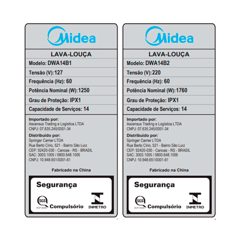 E não se preocupe com a capacidade de armazenamento, pois a Lava Louças Midea 14 serviços é capaz de acomodar até 14 xícaras, pires, copos, pratos de sobremesa, pratos de jantar e pratos de sopa, além de 1 prato oval, 14 colheres de sopa, 14 garfos, 14 facas, 14 colheres de chá, 14 colheres de sobremesa, 2 colheres de servir, 1 garfo de servir, 1 concha, 1 tigela pequena, 1 tigela média e 1 tigela grande. E o melhor de tudo, com o Programa Intensivo, suas louças são higienizadas em altas temperaturas de até 70°C* (*127v: 65ºC e 220v: 70ºC), garantindo uma limpeza ainda mais eficaz.