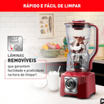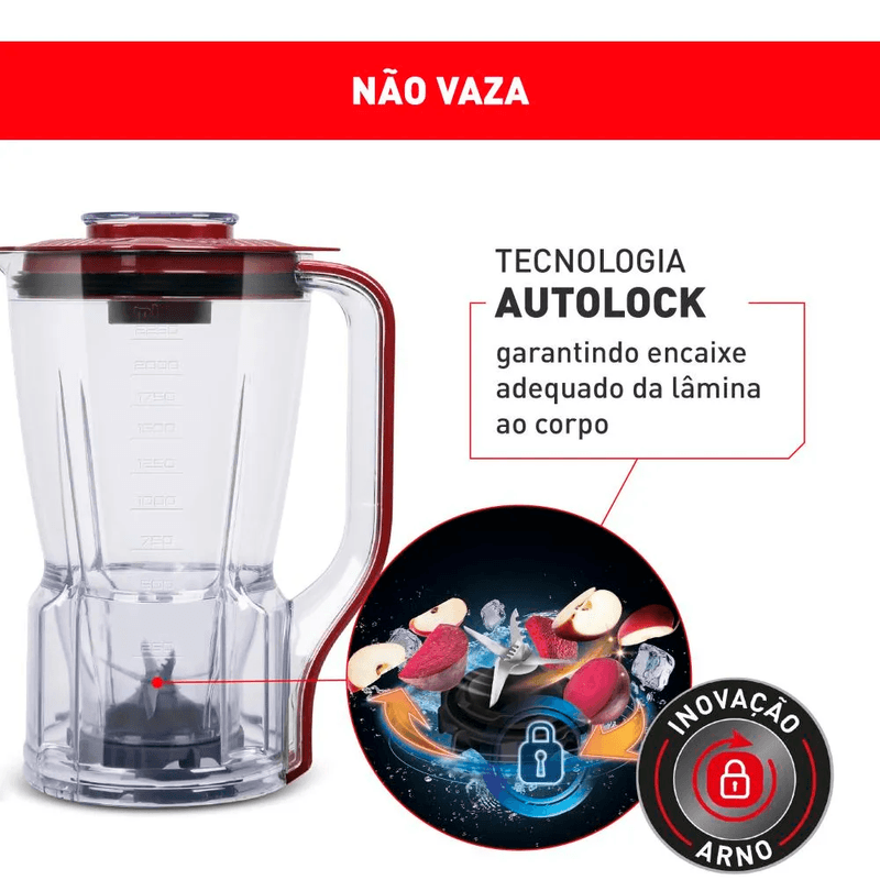 O liquidificador também conta com tecnologias exclusivas Autolock (Que impede vazamentos no encaixe da lâmina), Comfort Control (Controle contínuo de velocidades) e Limpa Fácil (Lâminas removíveis para melhor limpeza do produto), tornando sua vida mais fácil, com mais tempo para curtir com sua família.