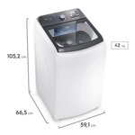 Funções: Dispenser Autolimpante, Diluição Inteligente, Turbo Agitação, Turbo Secagem, Limpeza de Cesto, Reutilização de Água, Avança Etapas, Programa Tênis, Programa Edredom, Duplo enxágue, Agitação/secagem