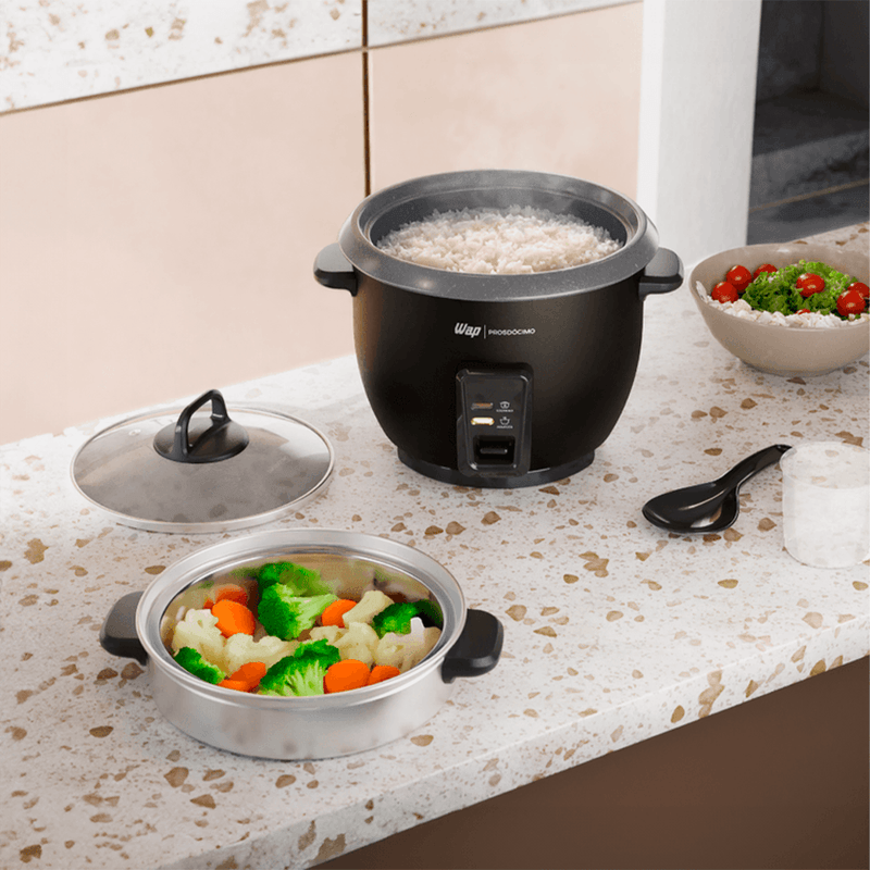 Preparos rápidos e sem complicações para uma rotina mais saudável! Economize tempo enquanto prepara arroz soltinho e saboroso com a Panela de Arroz Elétrica WAP. Prática e versátil, a ela possui função 2 em 1, possibilitando que você prepare arroz e uma variedade de receitas no vapor simultaneamente.