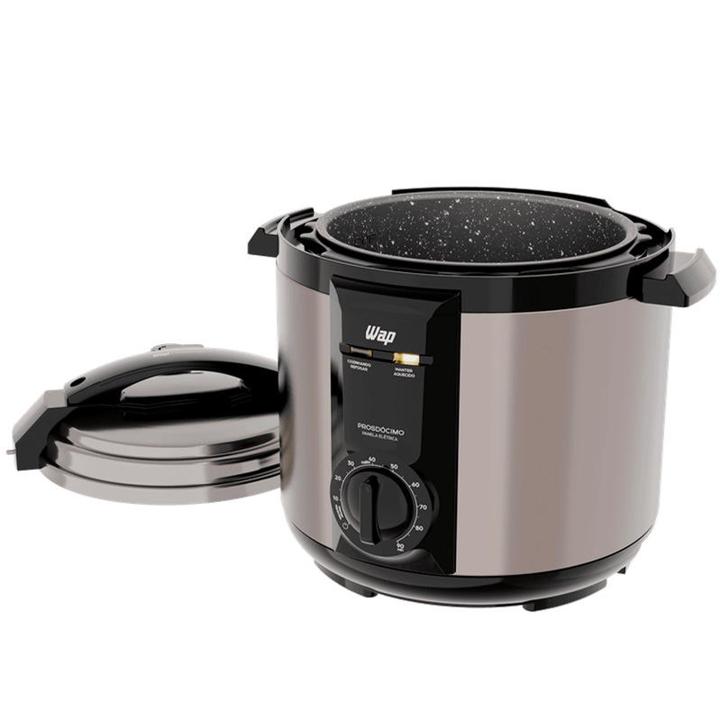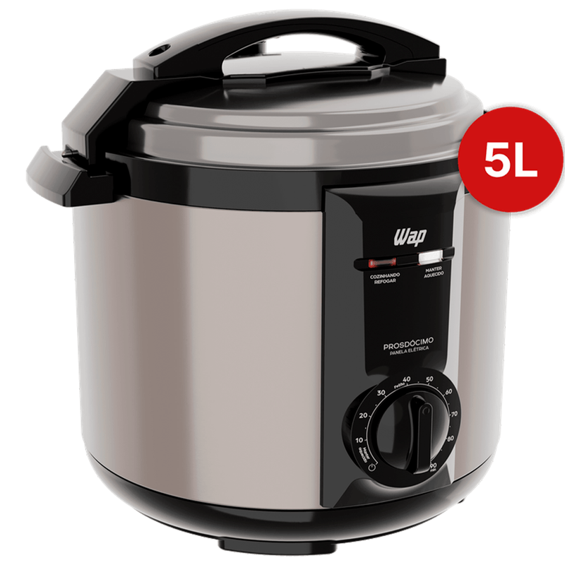 Refeições seguras, práticas e saborosas para a família toda! Mais segura e eficiente comparada às opções tradicionais, a Panela de Pressão Elétrica WAP 5L Prosdócimo oferece tudo o que suas aventuras na cozinha precisam: economia, praticidade e confiança.
