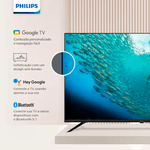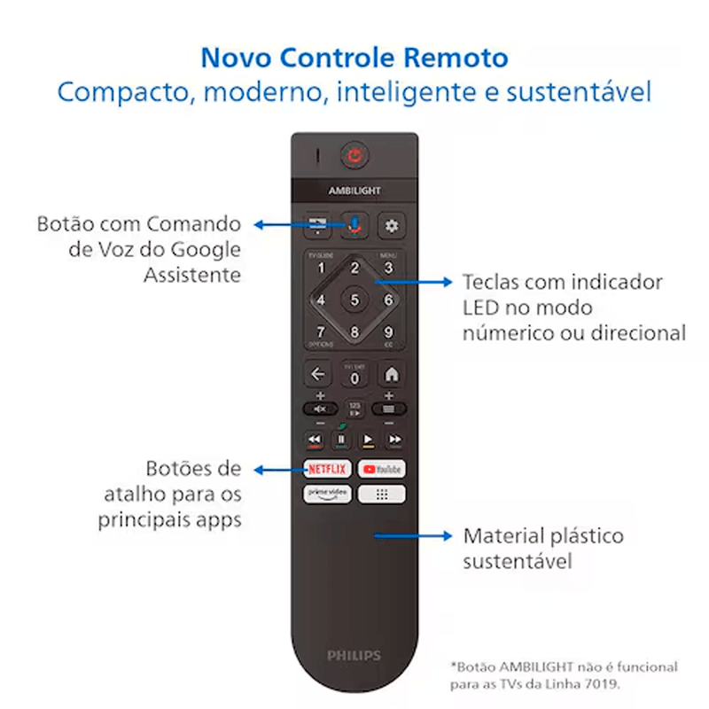 - Características: Chromecast Integrado, Som Surround, Sleep Timer, Closed Caption, Dolby Audio
