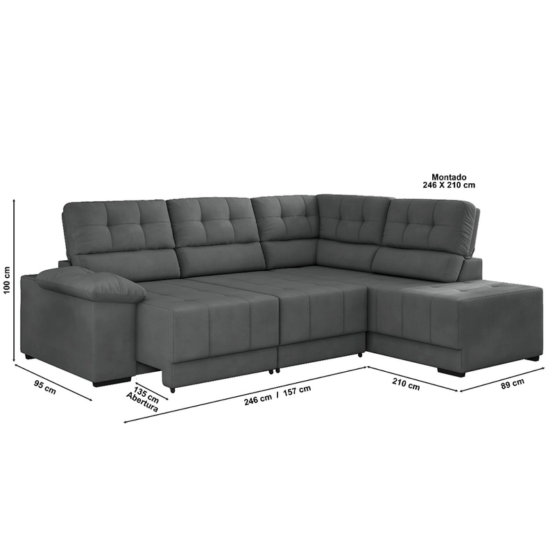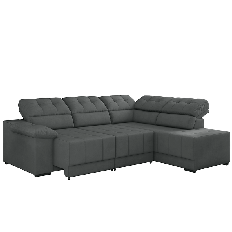 Seu assento retrátil com abertura suave garante espaço extra para momentos de descanso, enquanto o encosto reclinável oferece o ajuste ideal para assistir TV, relaxar ou receber visitas com muito mais conforto. A estrutura resistente, aliada à espuma de alta densidade e ao estofado macio, proporciona durabilidade e comodidade em cada uso.