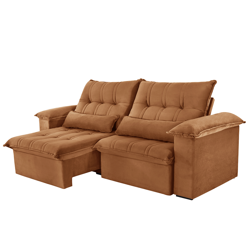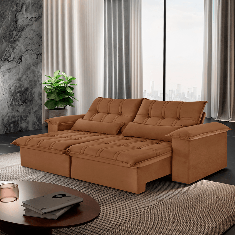 Sofá Sonoflet Ravena 2,5m Retrátil e Reclinável Terracota – Conforto, elegância e praticidade em um só móvel. Com design imponente e estofado macio, ele conta com assentos retráteis que se estendem para oferecer momentos de puro relaxamento, além de encostos reclináveis que se ajustam conforme a sua preferência. Seu revestimento em tecido terracota traz sofisticação e aconchego ao ambiente, criando uma atmosfera moderna e acolhedora. Ideal para salas de estar amplas, o Sofá Ravena alia durabilidade, conforto e estilo para transformar seus momentos de descanso em experiências únicas.